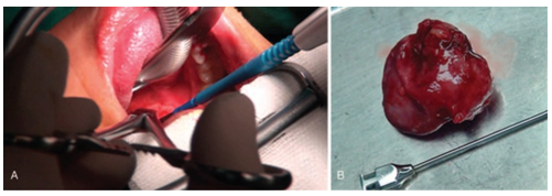 在全身麻醉下,90分钟内通过经口途径切除肿瘤(图5)。