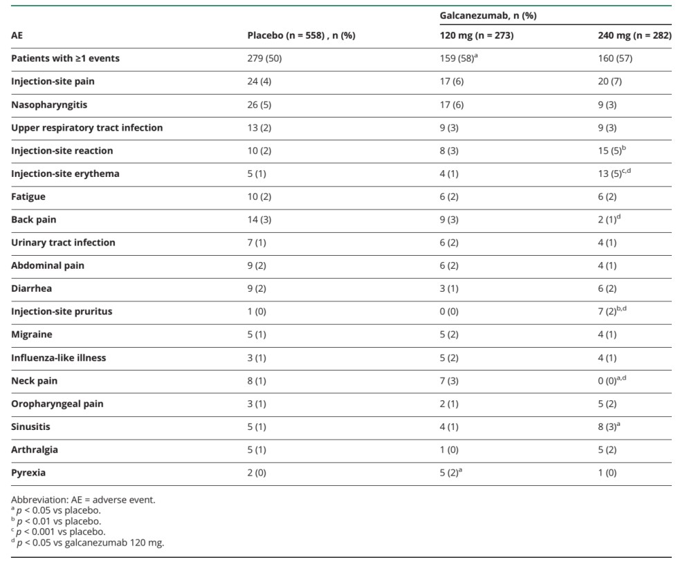 研究者总结道,Galcanezumab可有效减少慢性慢性偏头痛患者发病频率并且治疗具有极高的安全性和耐受性。研究者也提到了本研究的局限性:1)由于严格的纳入标准,使得本研究结果不能在普通人群中推广;2)随访时间相对较短。