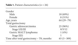 里斯本葡萄牙肿瘤研究所进行了一项观察性,前瞻性和非对照实验研究。入选患者标准为:1.接受全胃切除术的成年患者(≥18岁);2.有口服药物能力;3.没有其他恶性肿瘤;4.自愿同意纳入研究组内并签知情同意书。