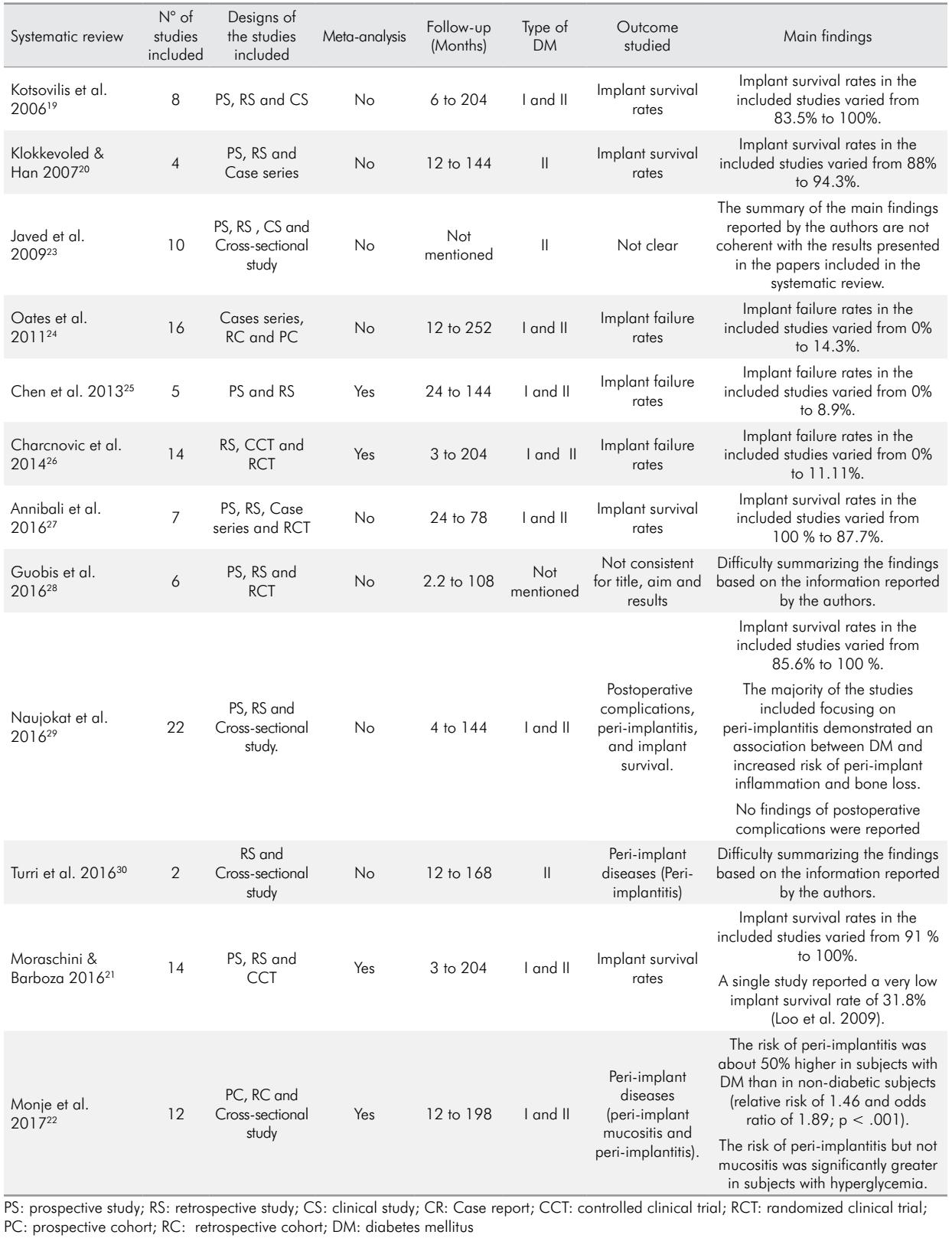 研究结果显示,糖尿病患者的植入物存活率从83.5%到100%不等,而植入物失败率从0%到14.3%不等。对事件“植入失败”进行的三项荟萃分析显示,糖尿病和非糖尿病受试者之间无明显统计学差异。研究结果显示,糖尿病患者的种植体周围炎风险明显增加。有证据表明,糖尿病患者的植入物具有较高的存活率和较低的失败率。然而,在大多数研究中,糖尿病是整体评估的,高血糖对植入物存活/失败的实际影响仍不确定。