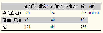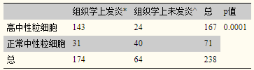 表4 中性粒细胞计数与阑尾炎的相关性结果