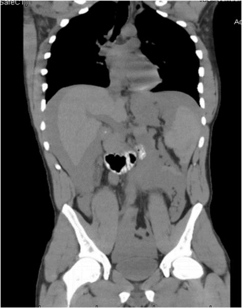 一名23岁男性患者因腹痛于我院急诊就诊,既往有酗酒史,入院前一天患者鼻内吸入可卡因,随即发生多次腹痛和呕吐。查体发现患者意识状态清醒,GCS评分15分,心率120次/分,血压105/55mmHg,腹膜炎迹象明显。行腹部CT检查提示腹腔内出血,脾破裂,如图1,图2。患者血红蛋白11mg/dL,尿液测试检测可卡因阳性,而患者并无任何外伤史。