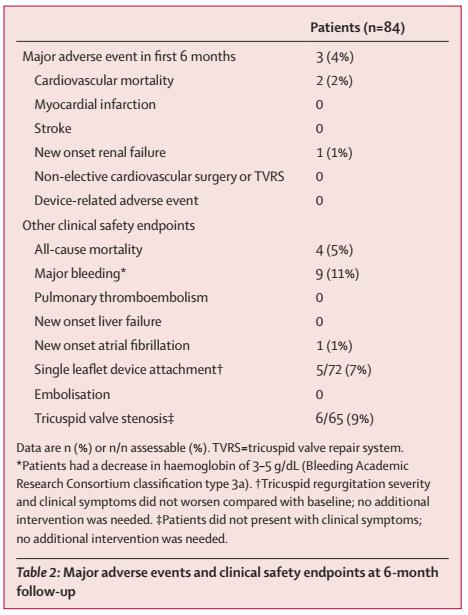 综上所述,TricIP系统对降低三尖瓣反流严重程度是安全、有效的。术后6个月,患者可获得显著的临床改善。