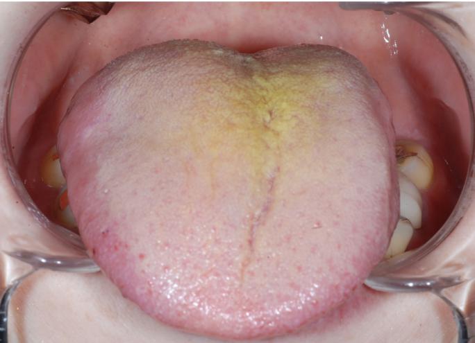 图1 患者第一次就诊时舌面粘膜完好