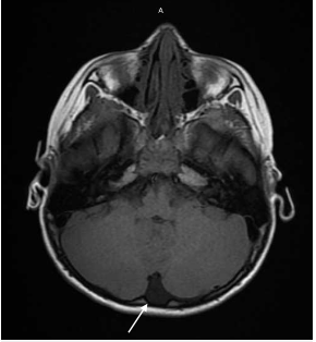 图1. MRI显示左小脑半球左后窝有一个小的蛛网膜囊肿