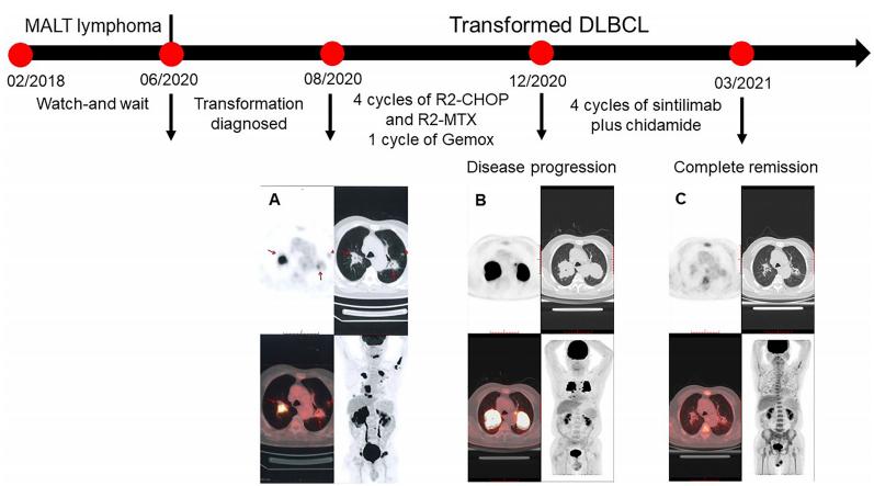 医博士编译自:Chen C, Zhang W, Zhou D, et al. Sintilimab and Chidamide for Refractory Transformed Diffuse Large B Cell Lymphoma: A Case Report and A Literature Review. Frontiers in Oncology. 2021; 11:757403. doi:10.3389/fonc.2021.757403.