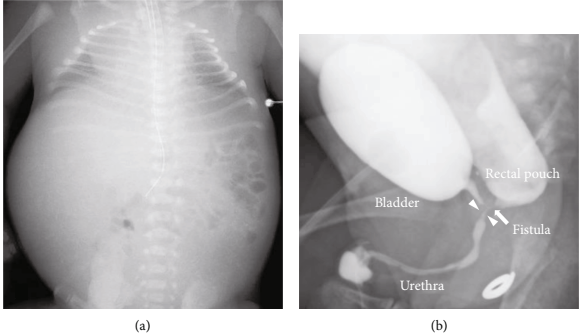 本文报告首例高位孤立性肛门闭锁伴一过性尿道梗阻致肺发育不良的病例。尿道梗阻使得尿液从膀胱经直肠尿道瘘流至结肠,导致羊水过少,肠扩张进展,肺发育不全,需要终止妊娠以治疗,并在出生后给予呼吸支持。肛门闭锁的产前诊断很重要,因为新生儿的处理因肛门闭锁亚型和其他先天性异常如泌尿系统异常的存在而不同。
