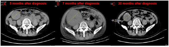 图2. 纳武单抗治疗后的CT显示肿瘤缓解