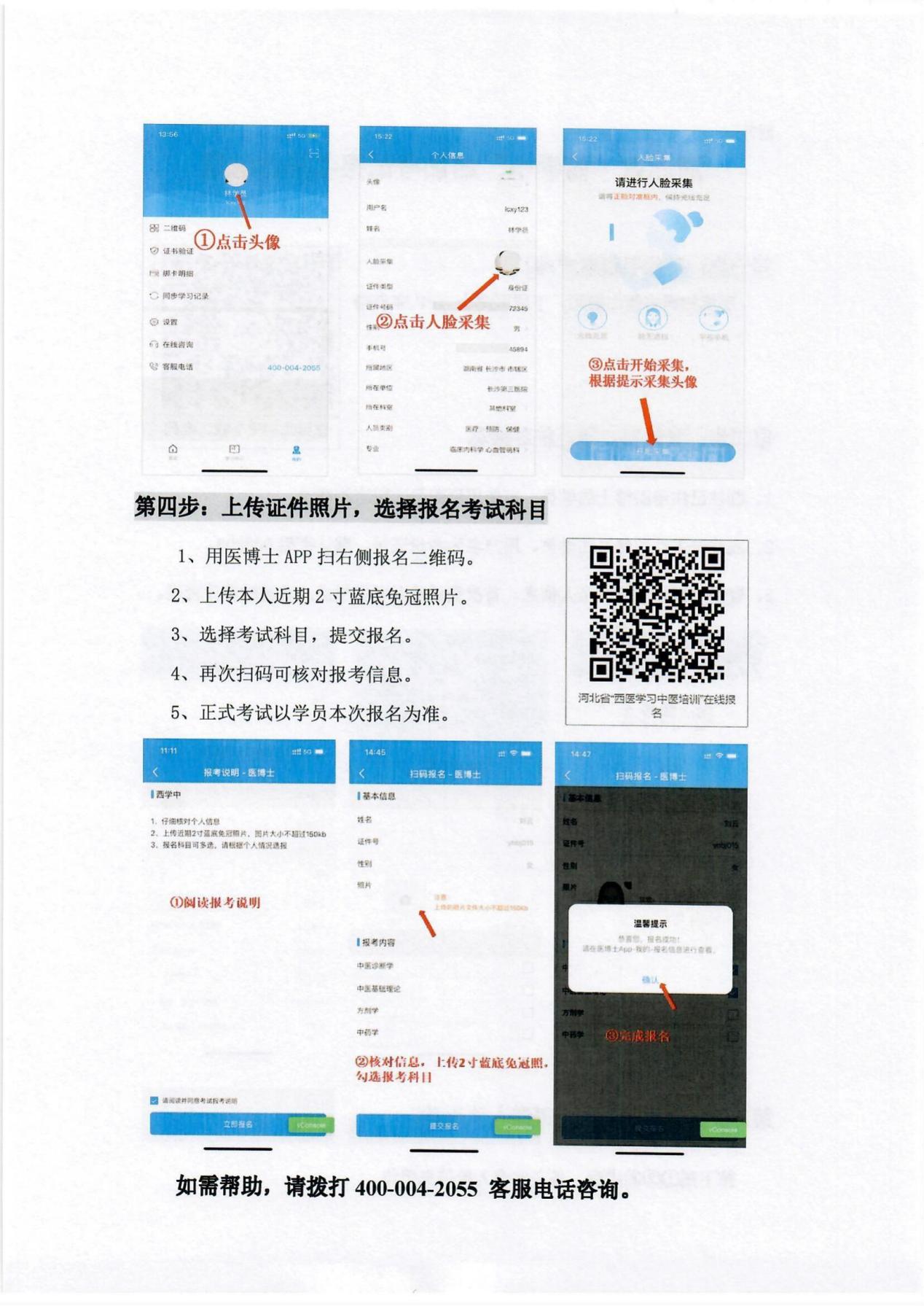 下载医博士APP,使用个人账号登录,扫描二维码后核实个人信息,上传照片,勾选报考科目,提交报名。(报名流程详见附件)。