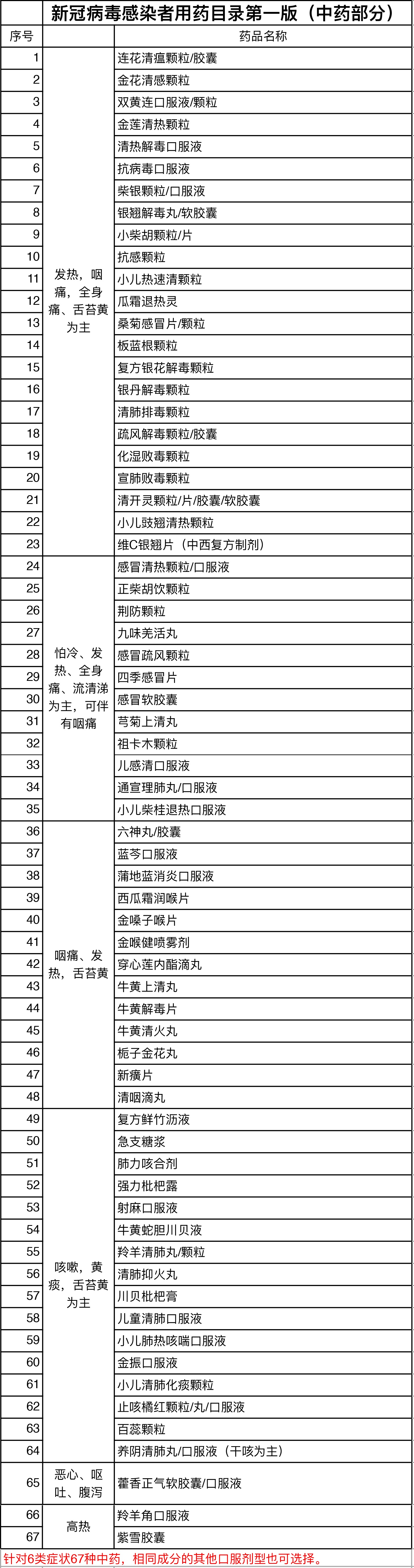 此版用药目录按照中西药分开的原则,是对国家第九版诊疗方案中推荐用药的完善和补充,针对发热、咽痛等6类中医诊断症状推荐67个中药品种;针对咳嗽、咳痰等4类临床症状推荐41个西药品种。这108个中西药产品中有很多非处方药(OTC),除了医院以外,患者也可以根据自身症状需求,从零售药店、电商平台等多种渠道获得。