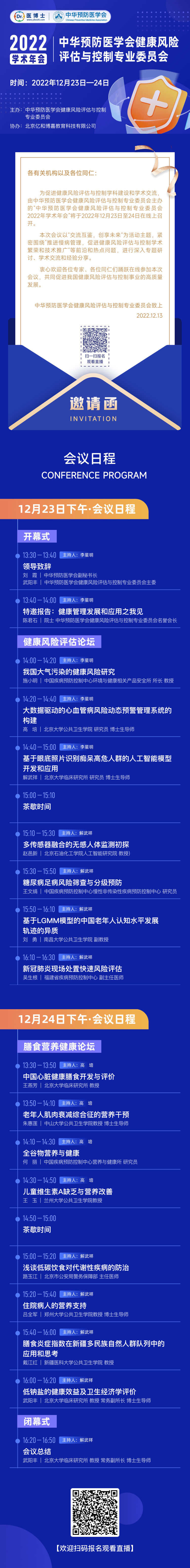 2022年12月23日至24日,由中华预防医学会健康风险评估与控制专业委员会主办,北京亿和博嘉教育科技有限公司(医博士)协办的“中华预防医学会健康风险评估与控制专业委员会2022年学术年会”将通过医博士直播平台在线召开。