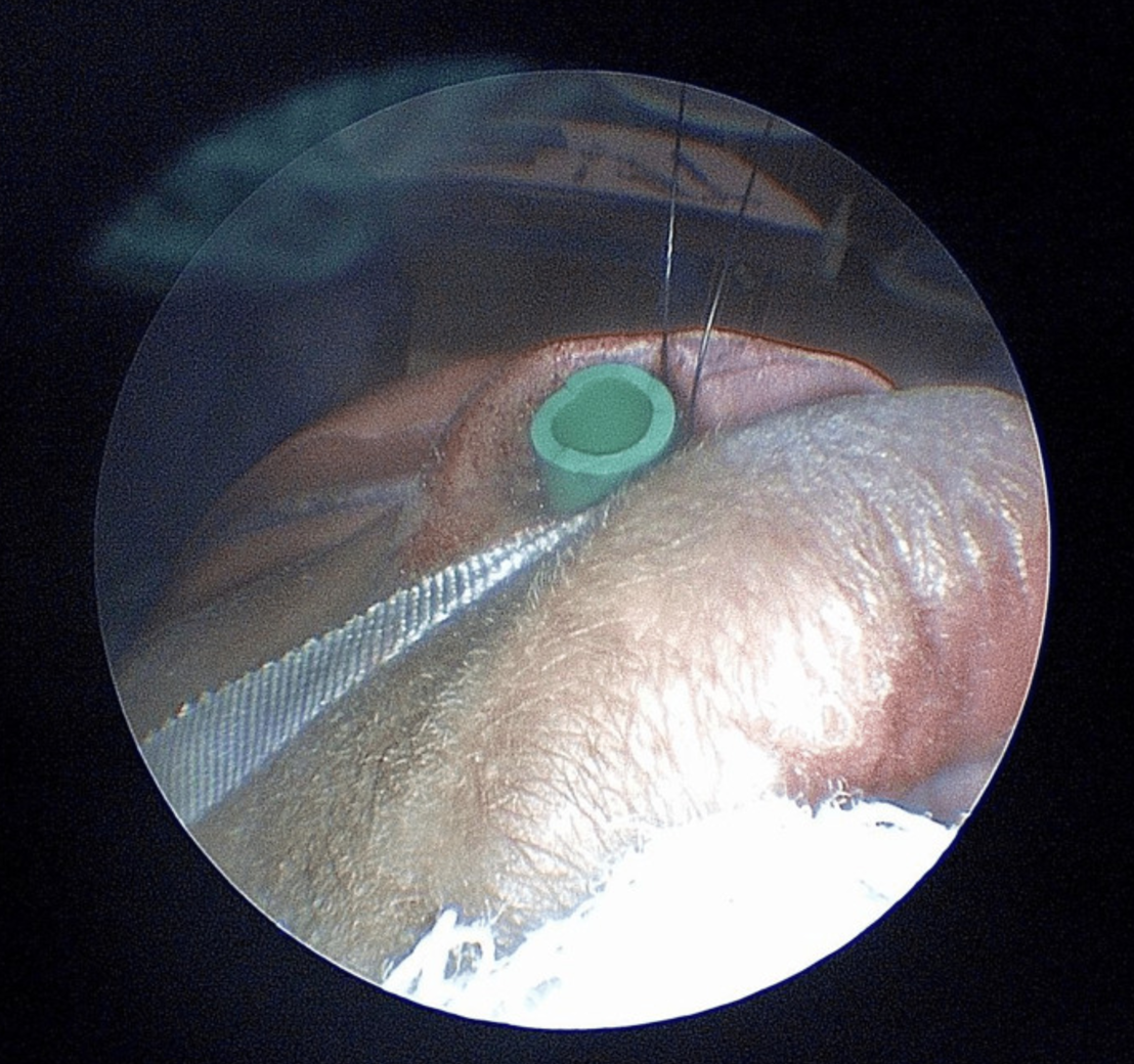 患儿首先进行了腺样体、扁桃体切除术,无并发症。进行修复时,使用零度内窥镜进行检查,发现右后鼻孔完全阻塞,伴有纤维和骨成分。此外,还注意到鼻中隔穿孔,这可能是由最初的纽扣电池损伤引起的。在右侧鼻腔粘膜上进行三分支切口,抬高三个粘膜瓣,并使用骨凿和切割钳去除疤痕。为了防止暴露在原始区域并降低再次瘢痕形成的风险,将三个粘膜瓣小心地放置在重建的气道中,并用5-0铬缝合。将14 French硅胶支架缩短并用3-0尼龙缝线缝合到中隔上(图3)。