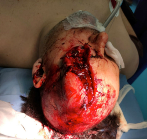 图1、照片显示左侧经眶眼球穿孔伤进入颅底
