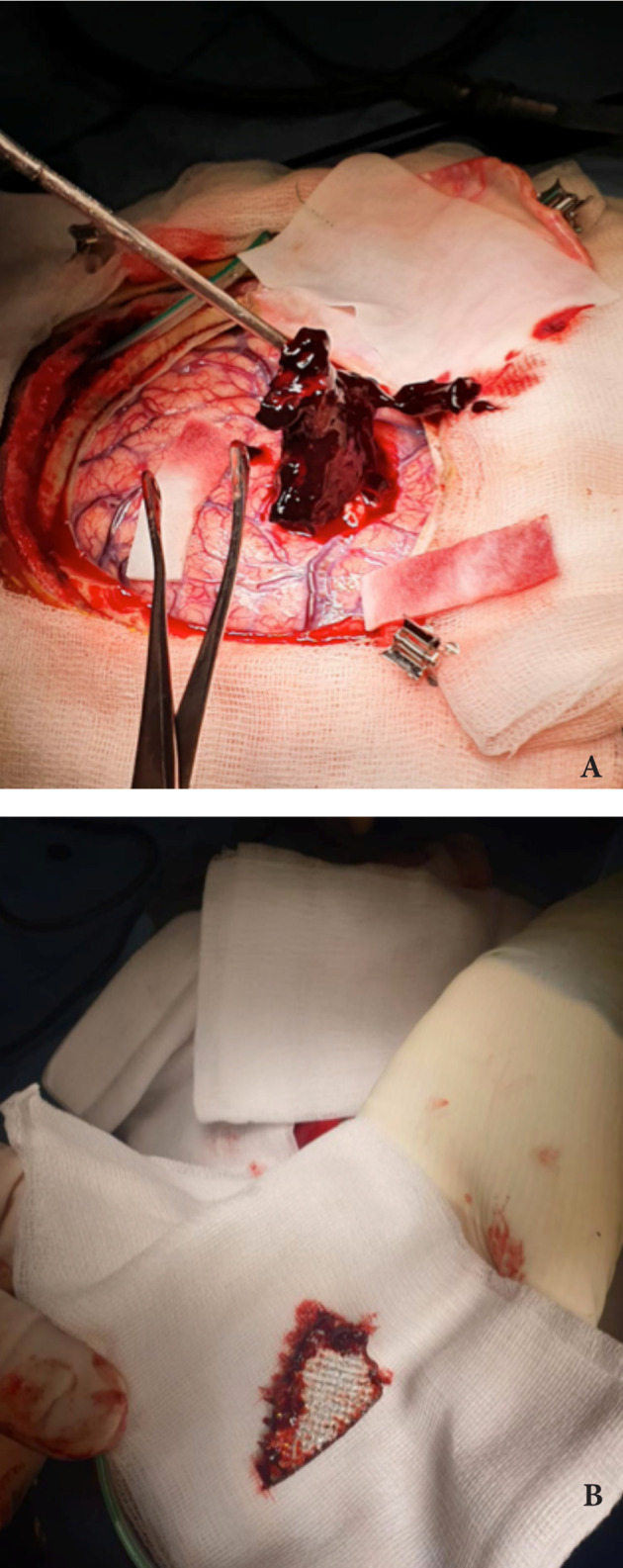 为了防止感染并发症,预防性施用广谱抗生素(万古霉素、美罗培南和第三代头孢菌素——头孢他啶14天)以及玻璃体内应用抗生素以降低眼内炎症的风险。虽然在去骨瓣减压术中硬脑膜被完全打开,但患者并没有报告术后脑脊液(CSF)渗漏或任何中枢神经系统感染的迹象。