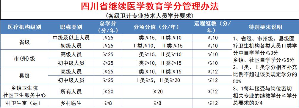 根据《四川省继续医学教育学分管理办法》的要求,继教学分达标是医护人员每年考核的重要内容,是所有医疗卫生技术人员聘任、职称晋升、执业再注册和定期考核的必备条件。