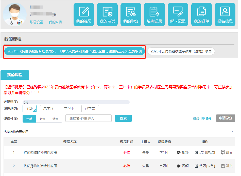 1、培训合格者可获得省级I类学分5分(此学分可视为面授学分),并获得由云南省继续医学教育委员会统一发放“抗菌药物的合理使用、中华人民共和国基本医疗卫生与健康促进法”全员培训合格证书(可在“继教通”打印电子证书)。