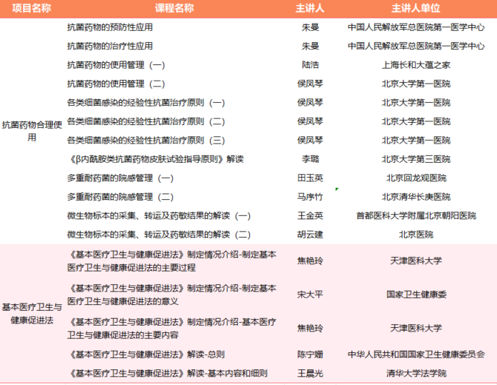 医博士深度精选好课程、严格筛选好师资,坚持“质量为先、内容为王”。内容包括《抗菌药物合理使用》及《基本医疗卫生与健康促进法》两部分,以《抗菌药物临床应用指导原则(2015年版)》、《中华人民共和国基本医疗卫生与健康促进法》两本书籍内容为理论基础,由临床经验丰富的教师结合临床实践讲述。