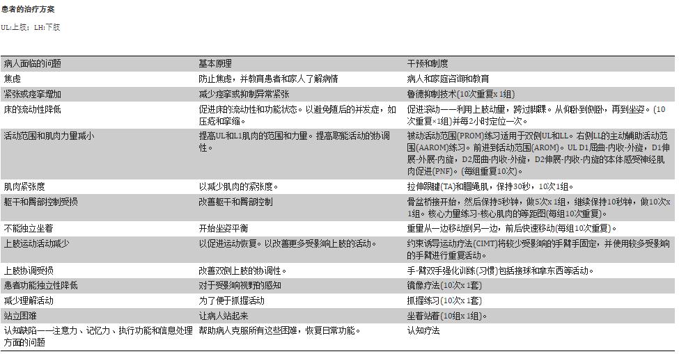 患者被诊断为双侧瘫。在转移到病房之前,在重症监护室行几日监护治疗。转移到病房,理疗随即开始。在康复训练前后检查生命体征,并采取所有必要的预防措施。患者的治疗方案在表3中给出。