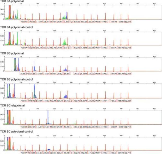 图5 T细胞受体(TCR)基因重排的阳性基因扫描结果