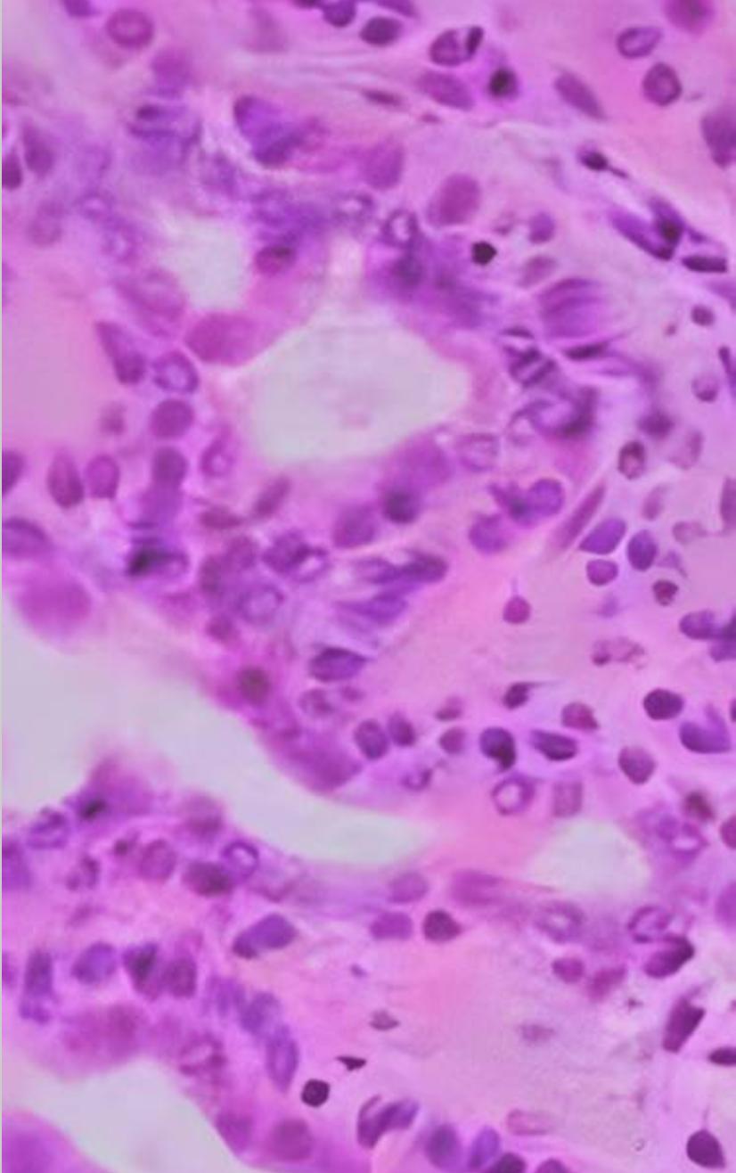 考虑到患者的年龄、整体健康状况和肿块的位置,选择全身麻醉下切除肿物,病理学检查提示肿物为PA(图2)。术后患者诉其鼻部症状明显改善,不适减轻且鼻腔通畅性改善。考虑到PA复发或并发症的可能性,每三个月随访以监测复发情况。