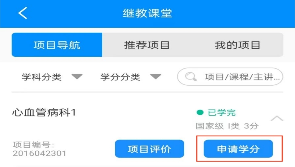 如果您完成继教项目学习,请不要忘记点击“申请学分”按钮。这一步骤非常关键!!如果您未点击申请学分,我们将无法为您完成后续学分对接工作。