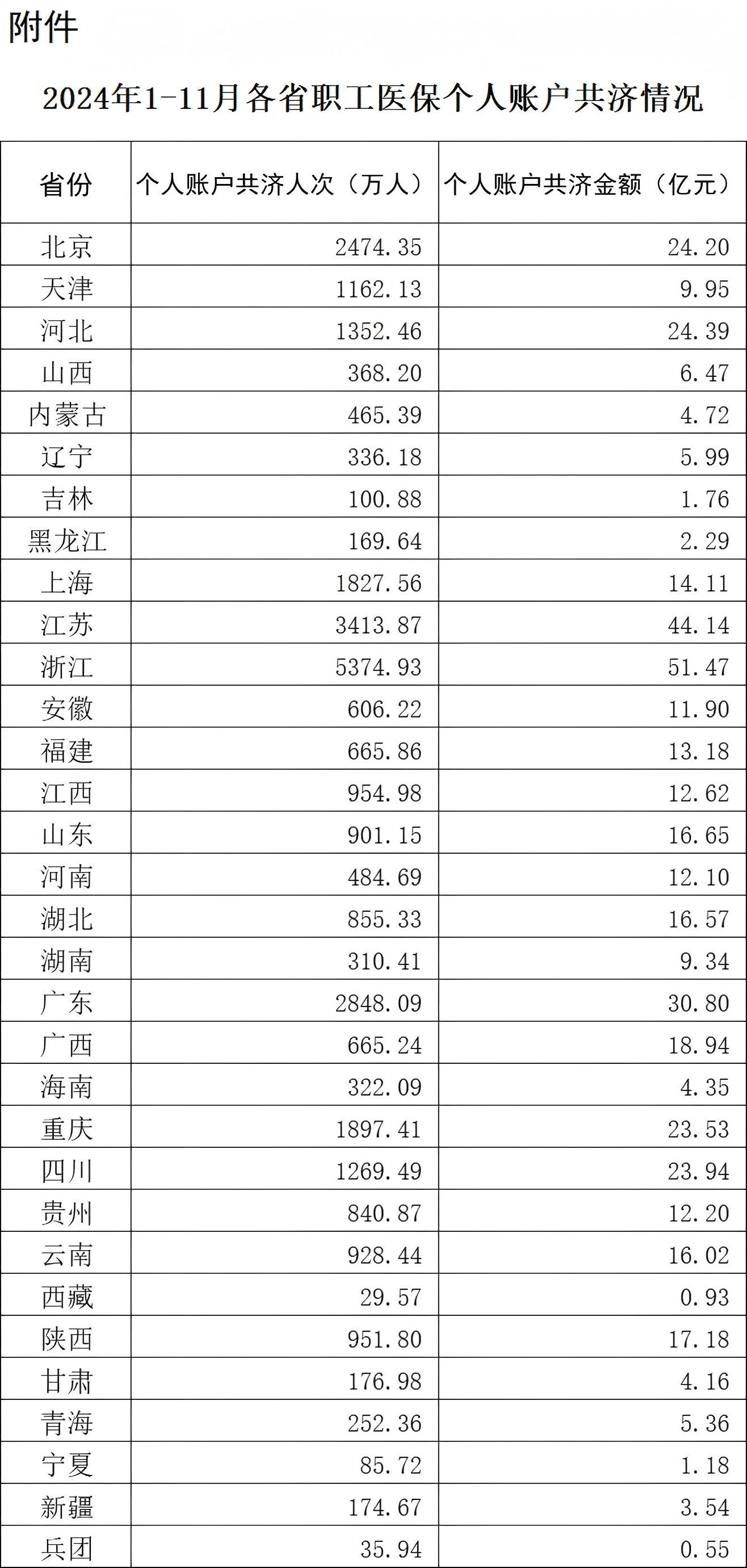 附件:2024年1-11月各省职工医保个人账户共济情况