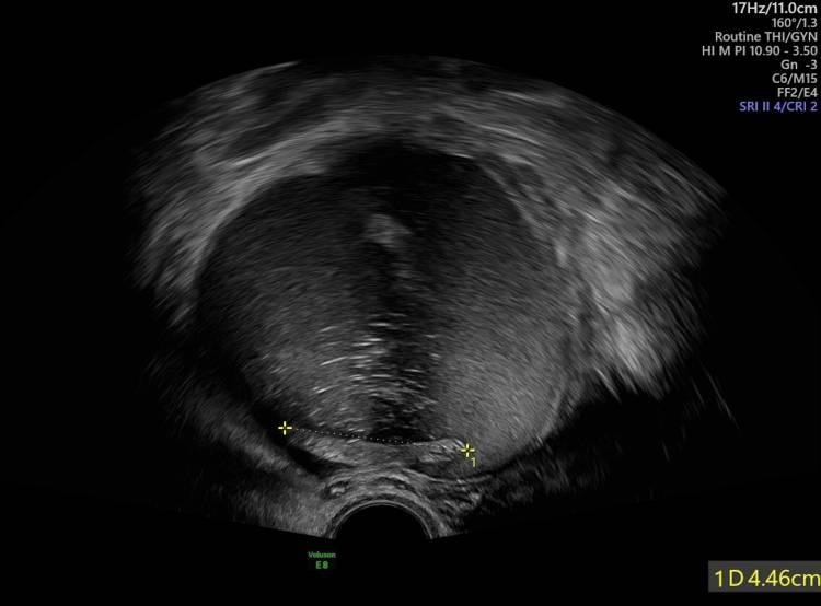 一位62岁的女性因腹痛和发热就诊。人病史包括过敏性哮喘、血脂异常和阑尾切除术。在临床检查期间,触诊了源自右卵巢的腹部肿块,这一发现最初是通过腹部超声发现的,被描述为右卵巢解剖区域直径为12厘米的异质结构。超声特征提示恶性肿瘤的可能性(图1)。