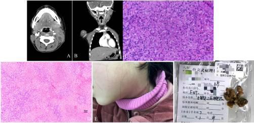 2022年1月19日,一名6岁女孩因“颈部肿物和发烧5天”入院。五天前,患儿在左侧出现颈部肿物,没有任何明显原因,伴有发热和轻度吞咽困难。在接受头孢哌酮-舒巴坦和甲硝唑治疗5天后,入院前一天开始出现双侧结膜充血。病史、家族史、用药史、社会史和过敏史均无异常。