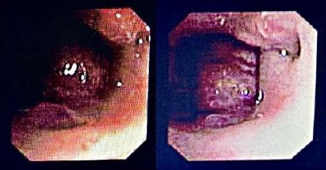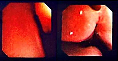 图1 初次支气管镜检查期间观察到的后鼻孔狭窄