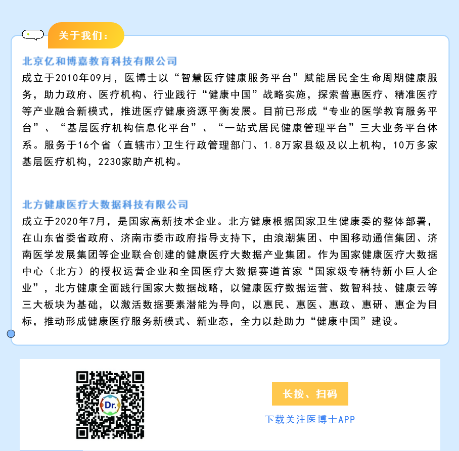 声明: 所有注明“来源:医博士”的文字、图片和音视频资料,版权均属于医博士所有,转载须注明“来源:医博士”;所有转载文章系出于传递更多信息之目的,且明确注明来源和作者,不希望被转载的媒体或个人可与我们联系,我们将立即进行删除处理。